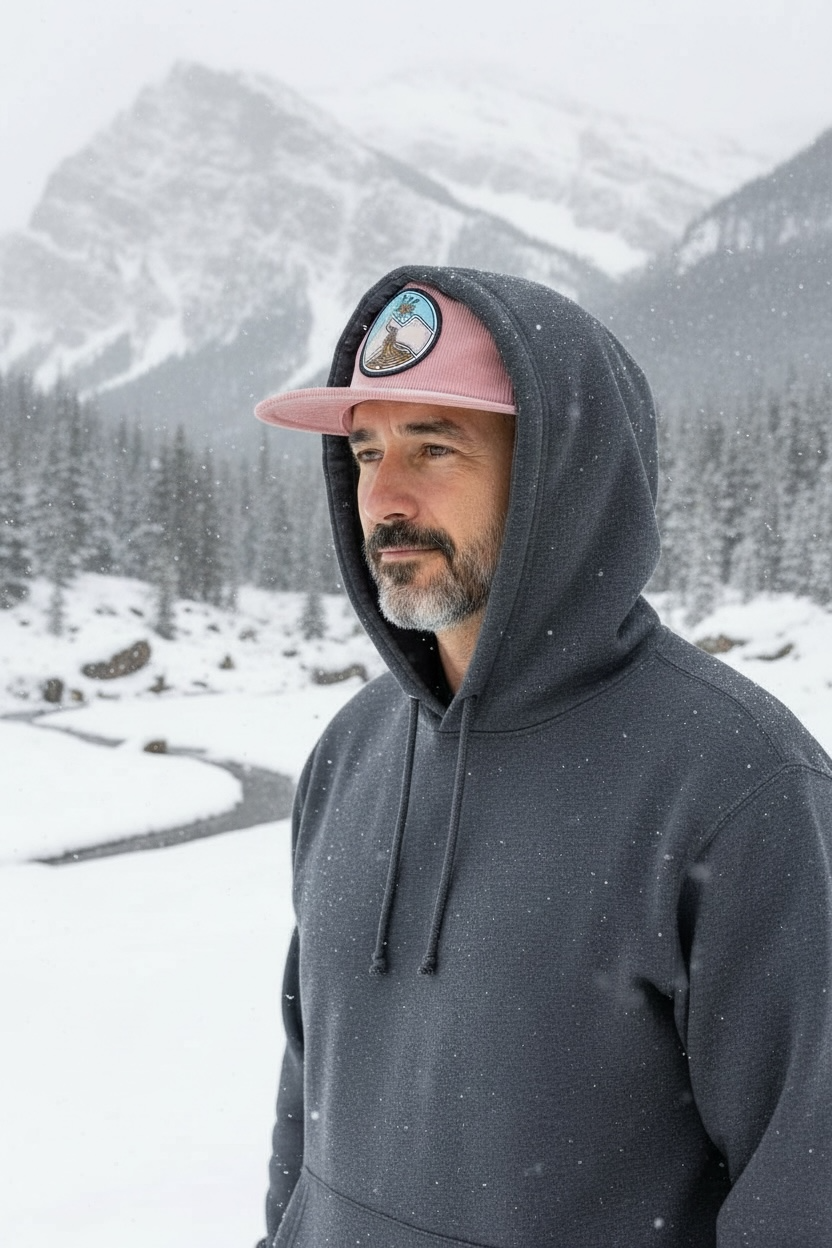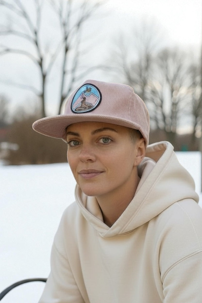Our graffiti logo (designed by Coast Creative Works) on Nissi Cap 5 panel corduroy hats with warm and cozy colours for the winter season.